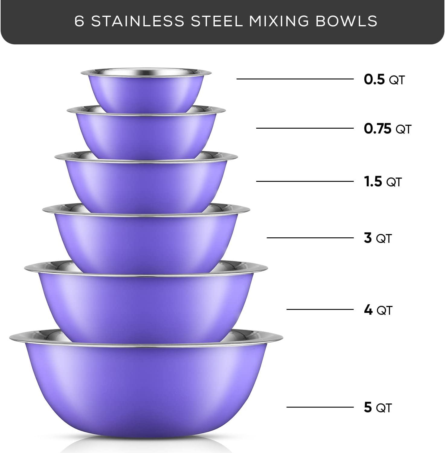 JoyJolt Stainless Steel Mixing Bowl Set of 6-5qt to 0.5qt Nesting Bowls for Dough, Batter & Baking(Very Peri)